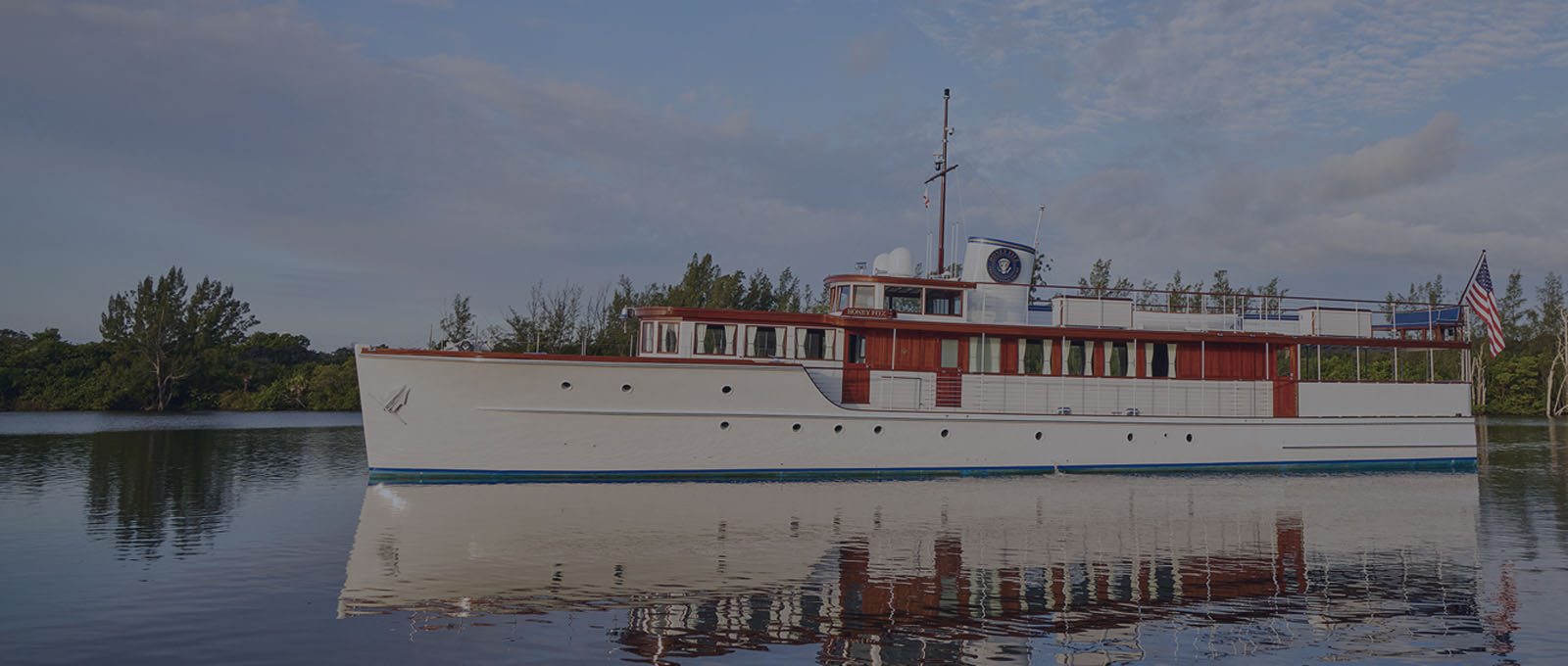 Constructed in 1931 by Defoe Boat & Motor Works in Bay City, Michigan, for Montgomery Ward magnate Sewell Avery, the HONEY FITZ is a 92-year-old ship currently docked at the Pelican Club in Jupiter, Florida. The HONEY FITZ has undergone a thorough restoration, carefully revitalized to showcase the historic elegance and distinctive style characteristic of the Kennedy era.